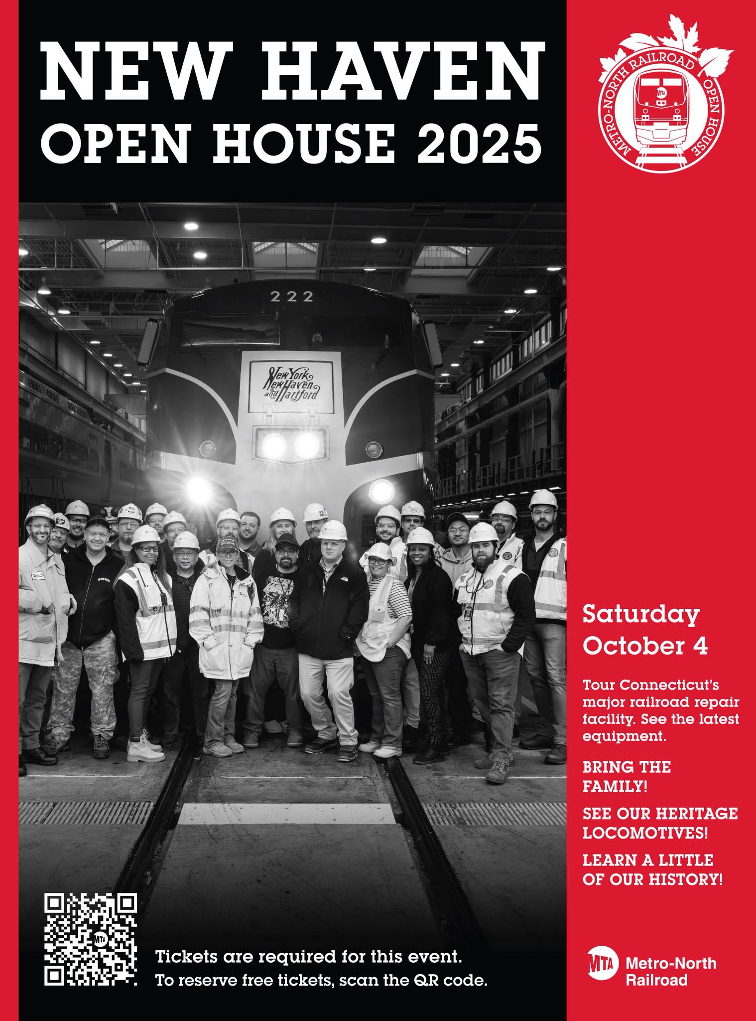 The Metro-North Open House for 2025 will take place at our New Haven Yard facility. The Yard is only accessible via a free shuttle service departing from the Metro-North New Haven Union Station.